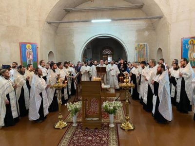 ТАИНСТВО ЕЛЕОСВЯЩЕНИЯ (СОБОРОВАНИЯ) ДЛЯ ВЫНУЖДЕННЫХ ПЕРЕСЕЛЕНЦЕВ ИЗ УКРАИНЫ В САНАТОРИИ «СПУТНИК» ГОРОДА ЛЮДИНОВО