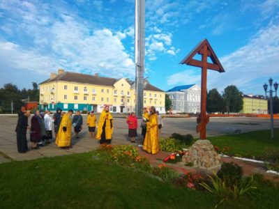 Заупокойная лития у Поклонного Креста в городе Людиново