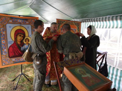Совершена литургия для военнослужащих на полевом выходе