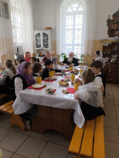 Первоклассники православного класса на встрече со своим наставником в Светлую Пасхальную Седмицу