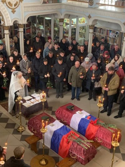 В Казанском соборе города Людиново был совершен чин отпевания погибших воинов.