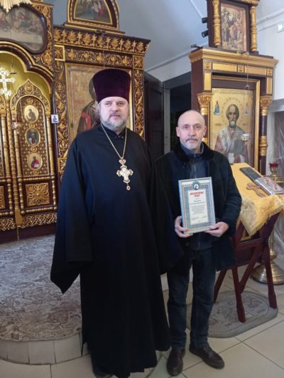 20 марта настоятель Свято — Лазаревского храма протоиерей Михаил Карпенко вручил благодарственные письма предпринимателям Хлуновскому Дмитрию Сергеевичу, Титову Сергею Александровичу, ... -