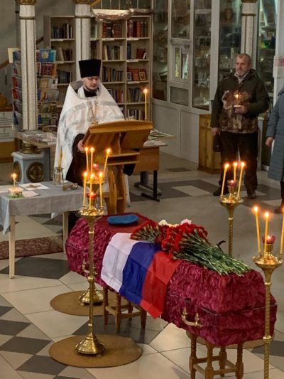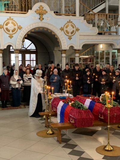 В Казанском соборе города Людиново прошло отпевание погибших воинов.
