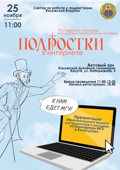 25 ноября состоится пастырский семинар на тему: «Подростки в интернете» Пастырский семинар для духовенства Калужской митрополии на тему: «Подростки в ... -